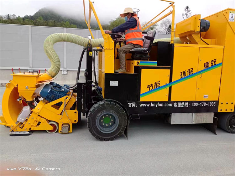駕駛式路面拋丸機(jī)通過(guò)機(jī)械的方法把丸料(鋼丸或砂粒)以很高的速度和一定的角度拋射到工作表面上,讓丸料沖擊工作表面,以達(dá)到被拋射的表面粗化并去除殘留物的效果,與此同時(shí)除塵器產(chǎn)生的負(fù)壓會(huì)將丸料和清理下來(lái)的雜質(zhì)粉塵等回收經(jīng)過(guò)氣流清洗后,完好的丸料會(huì)自動(dòng)循環(huán)使用,而雜質(zhì)和粉塵也會(huì)落入灰斗中